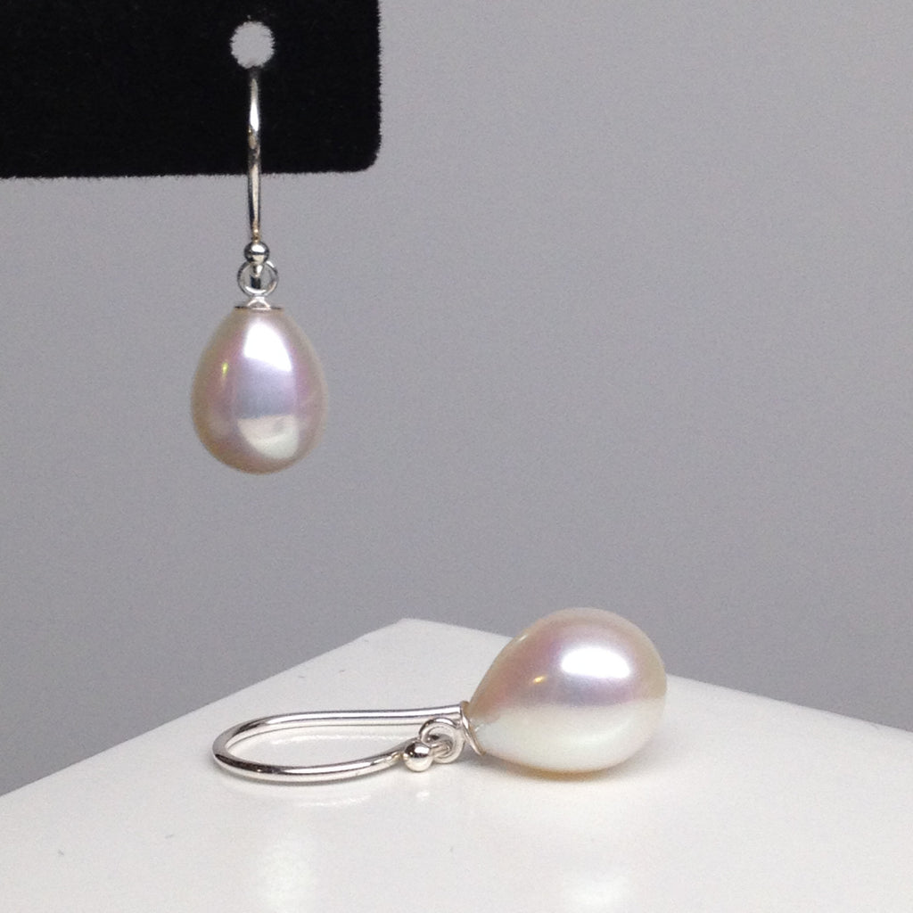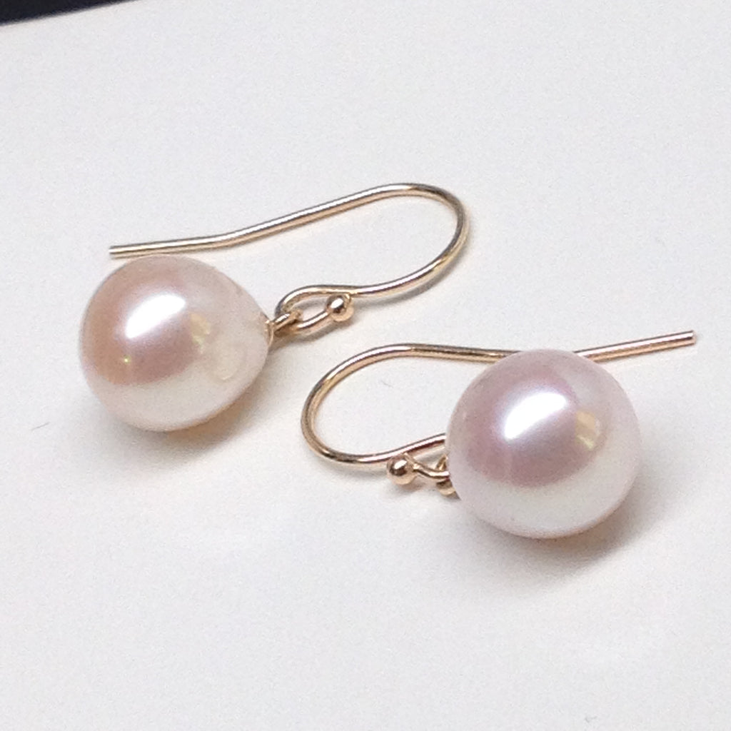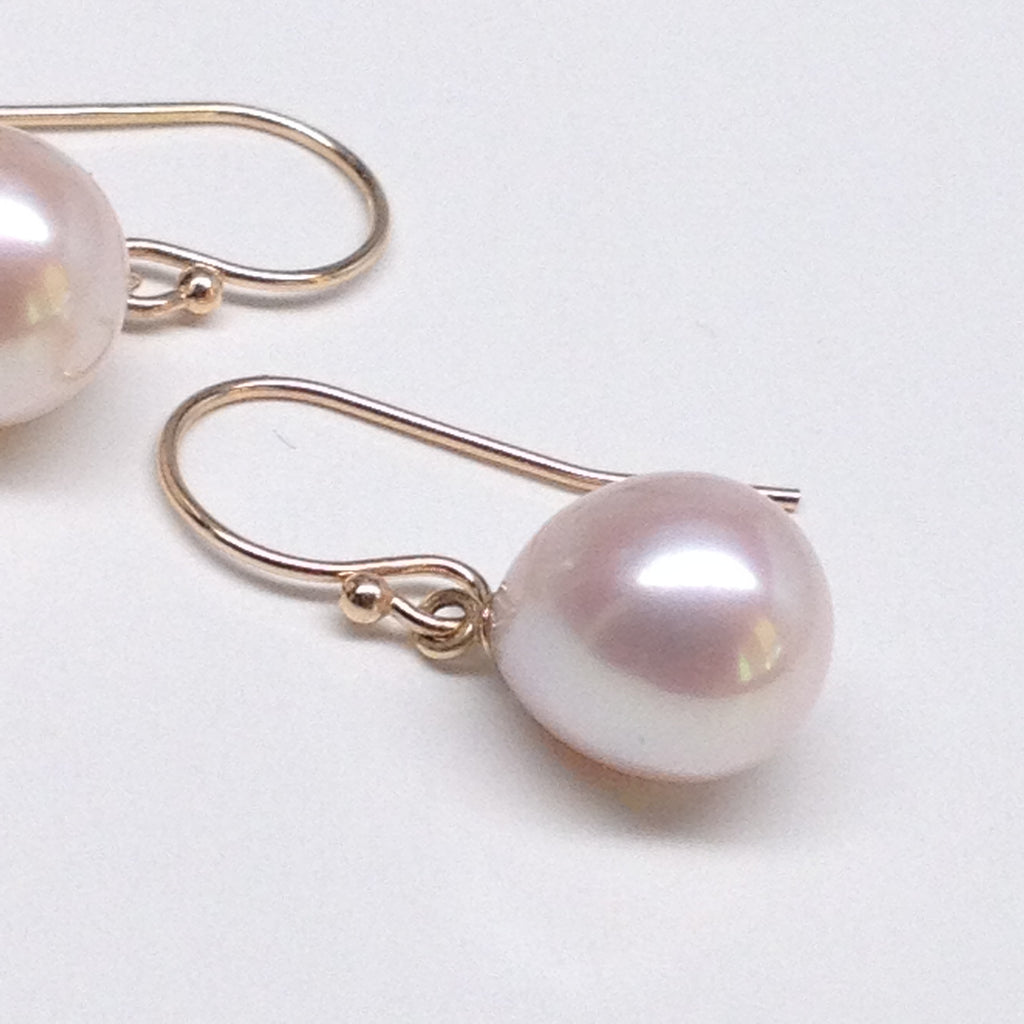 8.5x10mm White Freshwater Pearl Drop Earrings, 14k gold