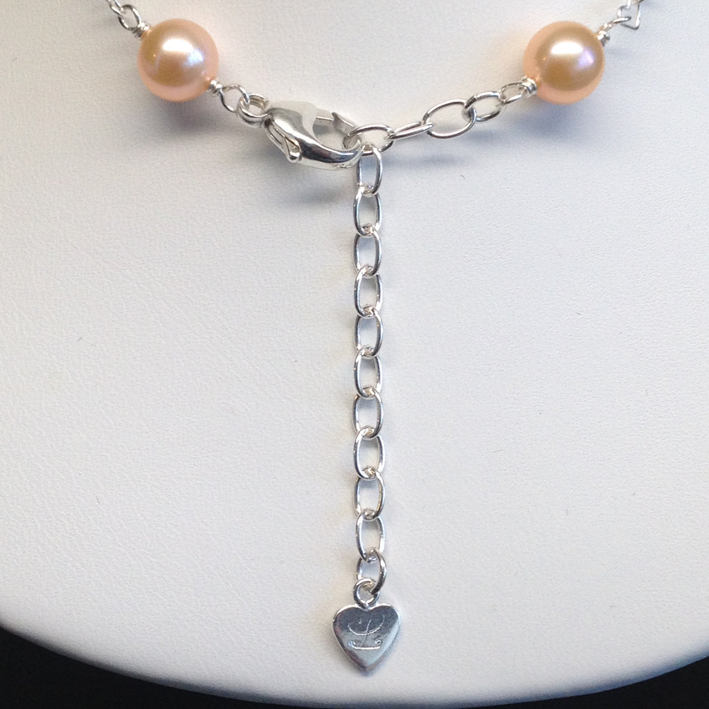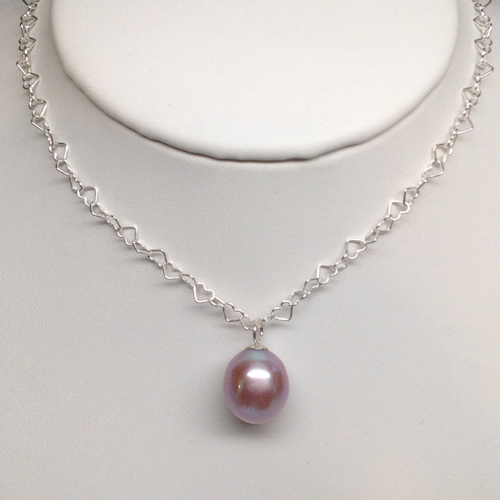 #JFPPHS1801Part of the Jelly Bean Collection, a playful collection of sterling silver interlocking heart necklaces with naturally colored freshwater cultured pearl pendants. Choose from a selection of naturally peach, lavender, or white freshwater cultured pearls. Wear it by itself or layer it with a choker. (Comes with our signature interlocking heart necklace. Velvet choker sold separately.)